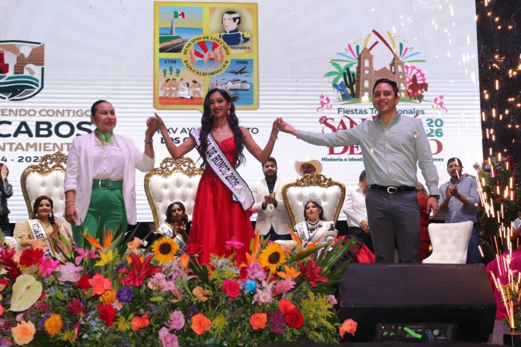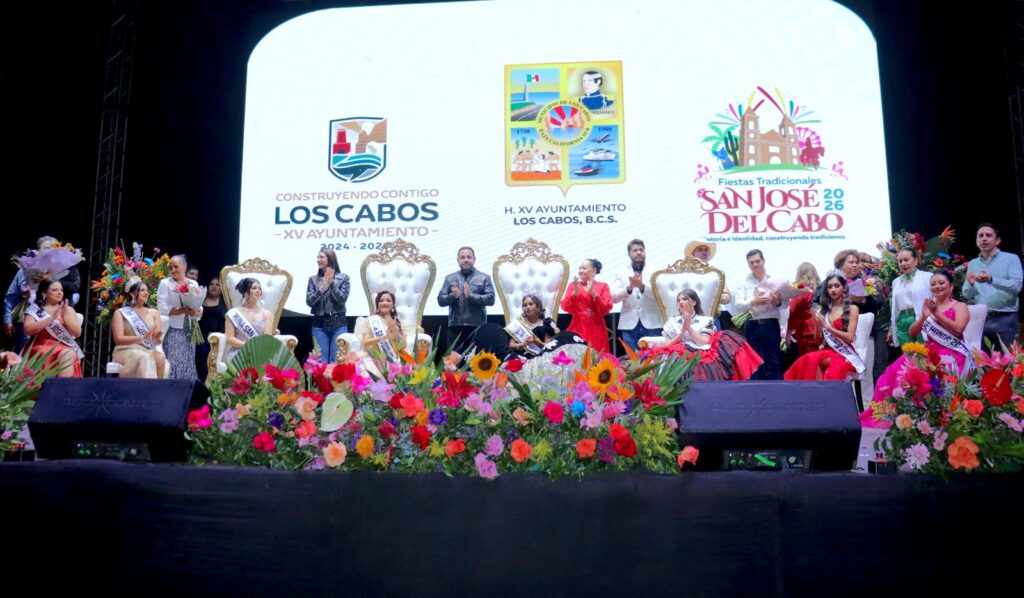 Luego del protocolo para dar inicio a las actividades, las autoridades se trasladaron al espacio para realizar la coronación de Jaretsy Guadalupe Hermida Espinoza como Reina de las Fiestas Tradicionales San José del Cabo 2026, donde también se desarolló un programa artístico-cultural.