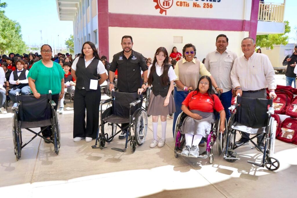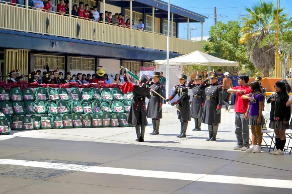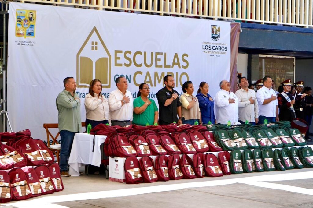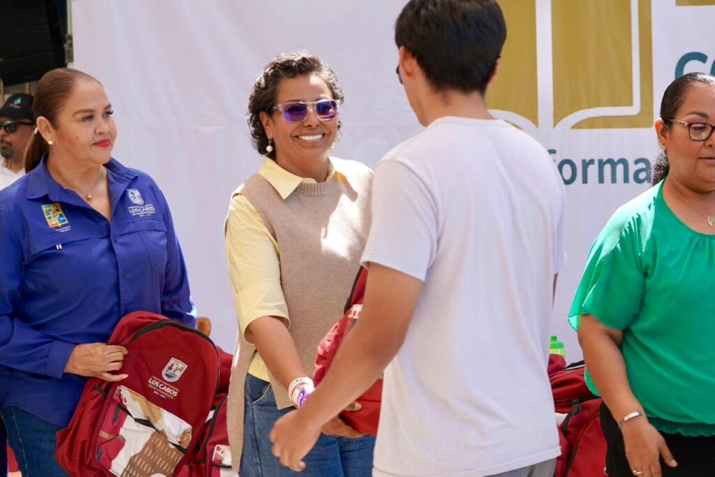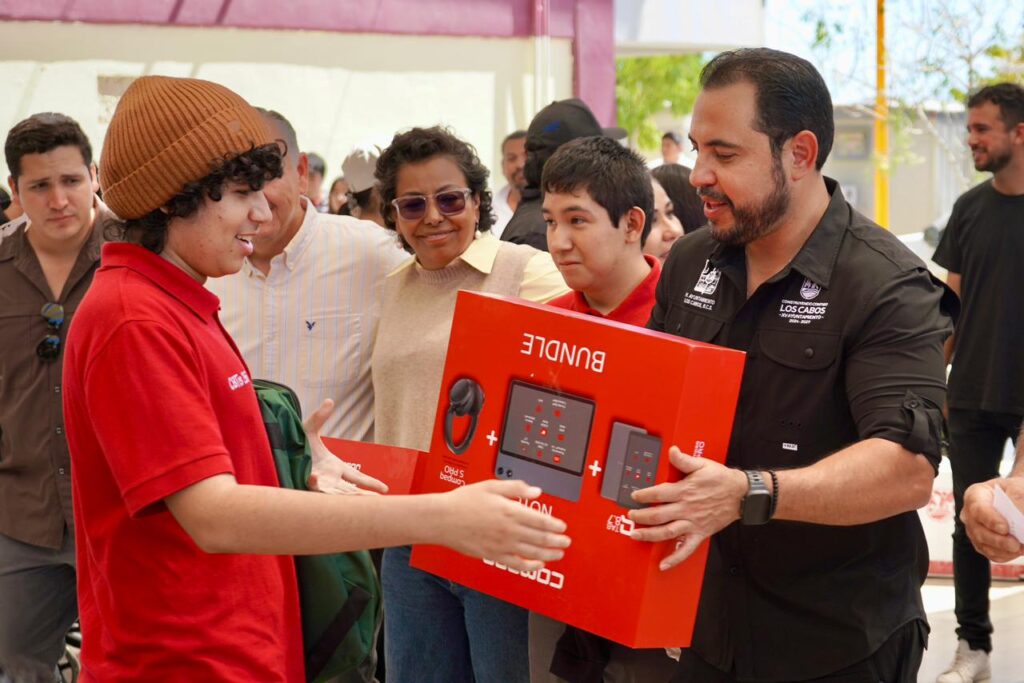 Los Cabos, Baja California Sur.– Con el propósito de fortalecer las condiciones educativas y brindar apoyo directo a la comunidad estudiantil, el presidente municipal de Los Cabos, Christian Agúndez Gómez, encabezó la entrega de $1 mil 100 mochilas escolares, 35 tablets destinadas a estudiantes con mayor rendimiento académico y sillas de ruedas, durante una visita al Centro de Bachillerato Tecnológico, Industrial y de Servicios (CBTIS) No. 256.