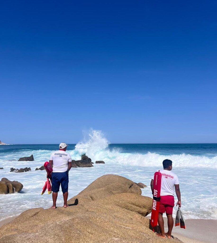 En el lugar, los elementos trabajaron de manera coordinada con salvavidas del grupo Vidanta, logrando ubicar al joven aproximadamente a 150 metros mar adentro. Un rescatista ingresó al agua con el equipo necesario para brindarle auxilio, apoyado por otros guardavidas, ante las condiciones de baja visibilidad y oleaje.