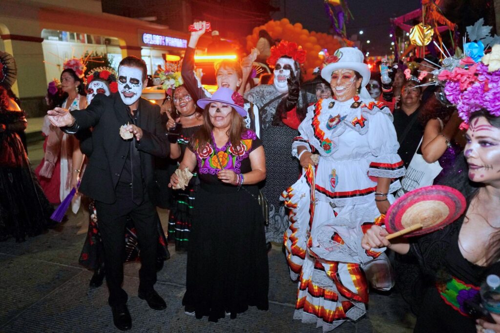 Los Cabos, Baja California Sur.- Con gran participación ciudadana, el XV Ayuntamiento de Los Cabos celebró el Día de Muertos en el corazón de Cabo San Lucas, a través de la Delegación Municipal, encabezada por Karina de la O Uribe, quien encabezó el Desfile Vial organizado por Canirac y el Festival Mar de Ofrendas, enmarcado dentro del programa “Viva La Plaza”, impulsado por la Asociación de Empresarios de Los Cabos.