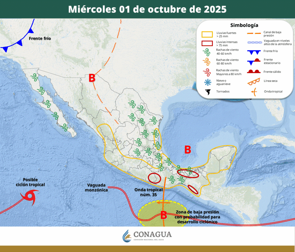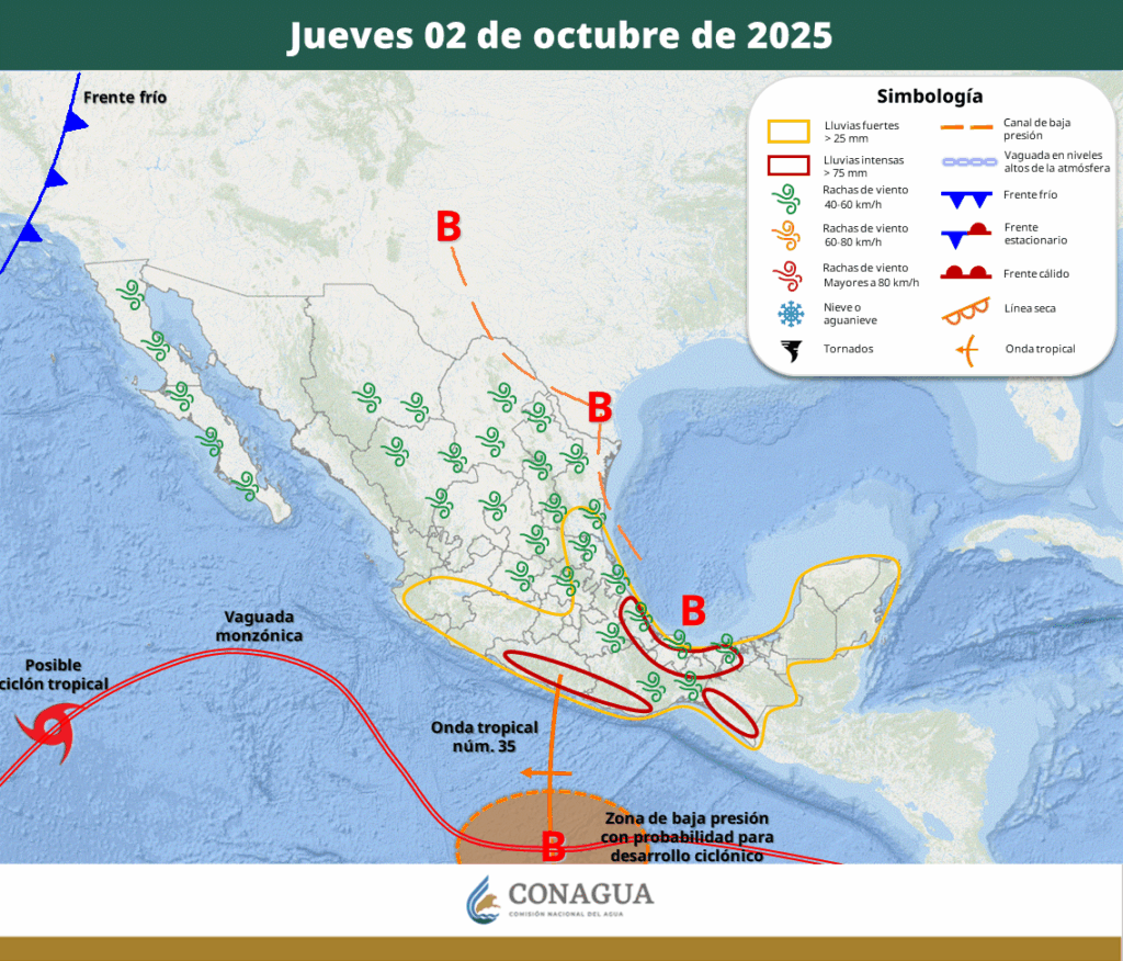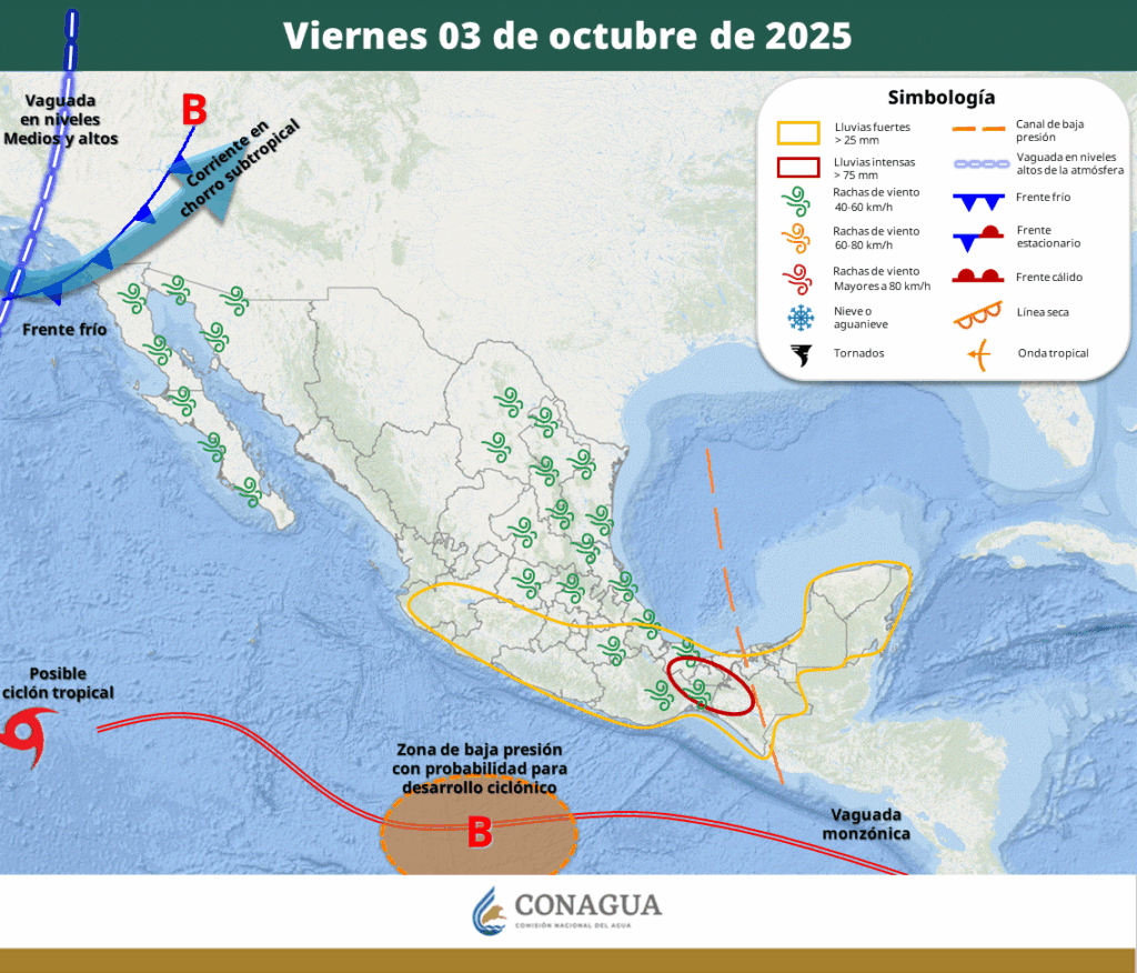 Mientras en el municipio se mantienen condiciones estables, en el océano Pacífico se desarrolla un sistema de baja presión con potencial ciclónico, al sur de las costas mexicanas. De acuerdo con el Servicio Meteorológico Nacional, este fenómeno presenta una probabilidad creciente de evolucionar a tormenta tropical, con el posible nombre de Octave.