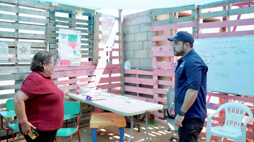 “Agradecemos la visita del presidente municipal, Christian Agúndez, porque en verdad está llegando en el momento oportuno, donde nosotros tenemos varias situaciones. Entre ellas, que tenemos que abandonar este espacio porque no es nuestro y debemos hacer algunos cambios, entre ellos la construcción de baños, que es una prioridad para podernos cambiar a otro lugar, y sobre todo atender las necesidades que existen en cuanto a los techos”, mencionó.