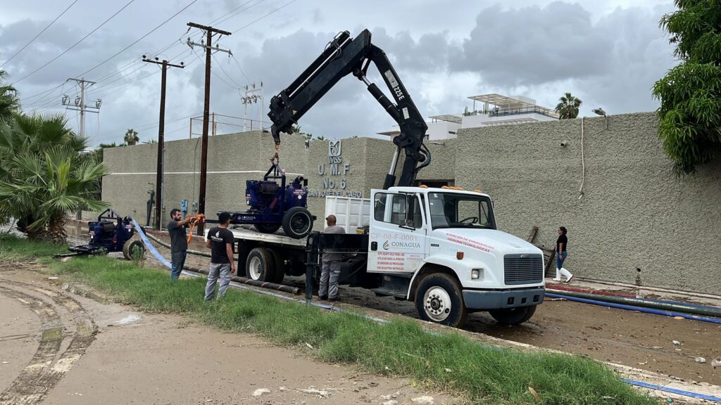 La Comisión Nacional del Agua (CONAGUA) realizó acciones para desalojar el agua acumulada en la Clínica No. 6 del IMSS, en San José del Cabo, mientras que la Comisión Federal de Electricidad (CFE) se reportó lista para atender cualquier afectación que la población reporte a través de la aplicación CFE Contigo y al 071.