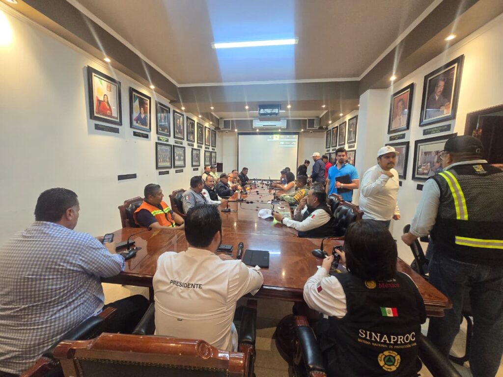 Las autoridades estatales y municipales mantienen sesiones permanentes de los Consejos Estatal y Municipales de Protección Civil, con la participación de la CNPC, Defensa, Marina, GN, SMN, Conagua, SMN y CFE.