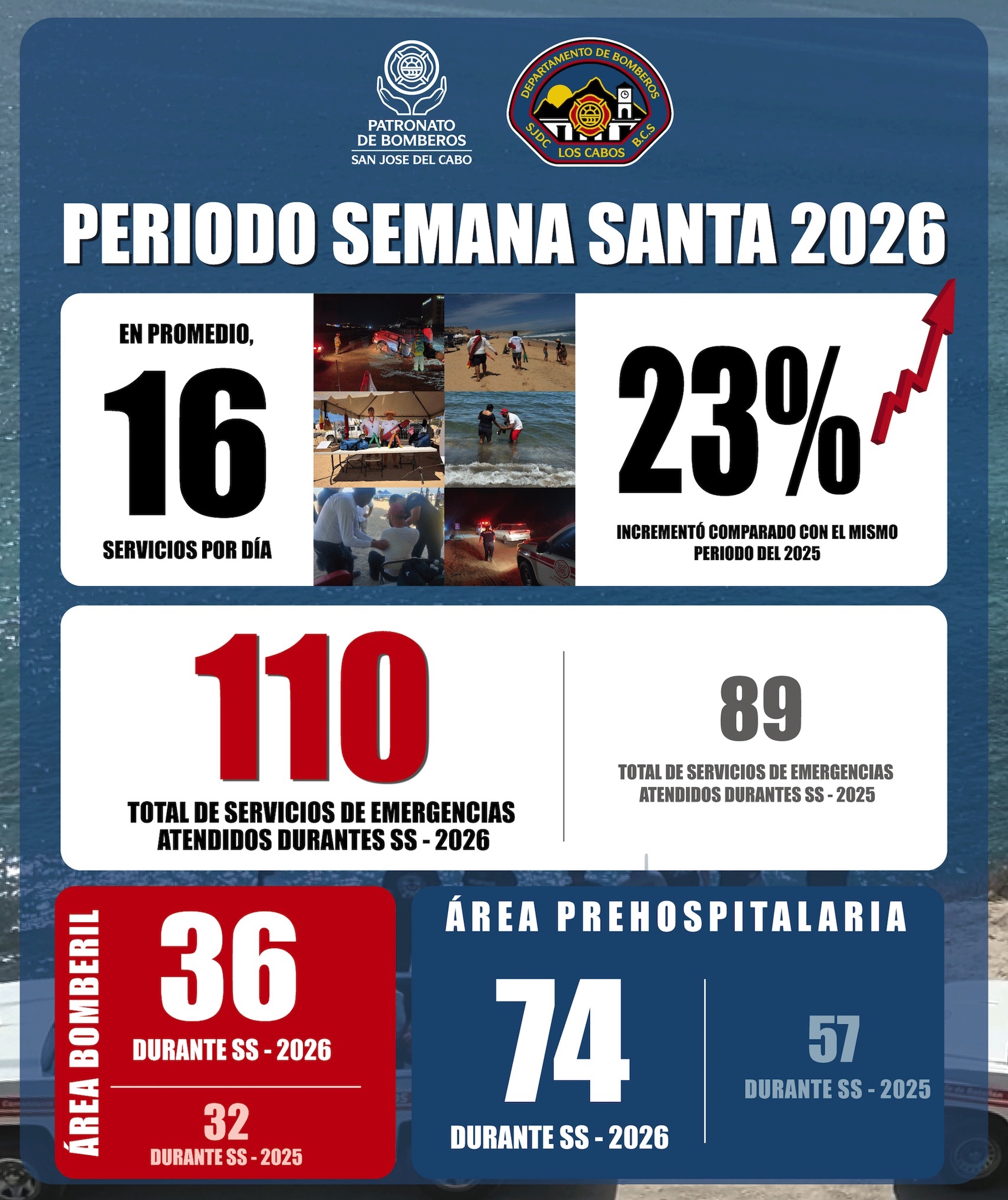 Bomberos San José del Cabo reporta un incremento del 23% de los servicios de emergencias durante la Semana Santa 2026
