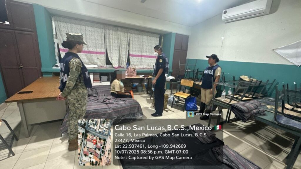 Ante esta situación, el Sector Naval de Cabo San Lucas despliega personal, material y vehículos para ejecutar acciones y gestionar riesgos de manera coordinada con las dependencias de los tres niveles de gobierno, con el objetivo de brindar auxilio a la población que pudiera resultar afectada por el impacto del fenómeno meteorológico.