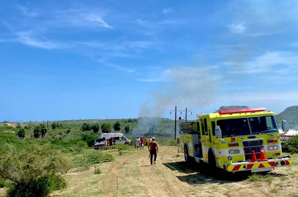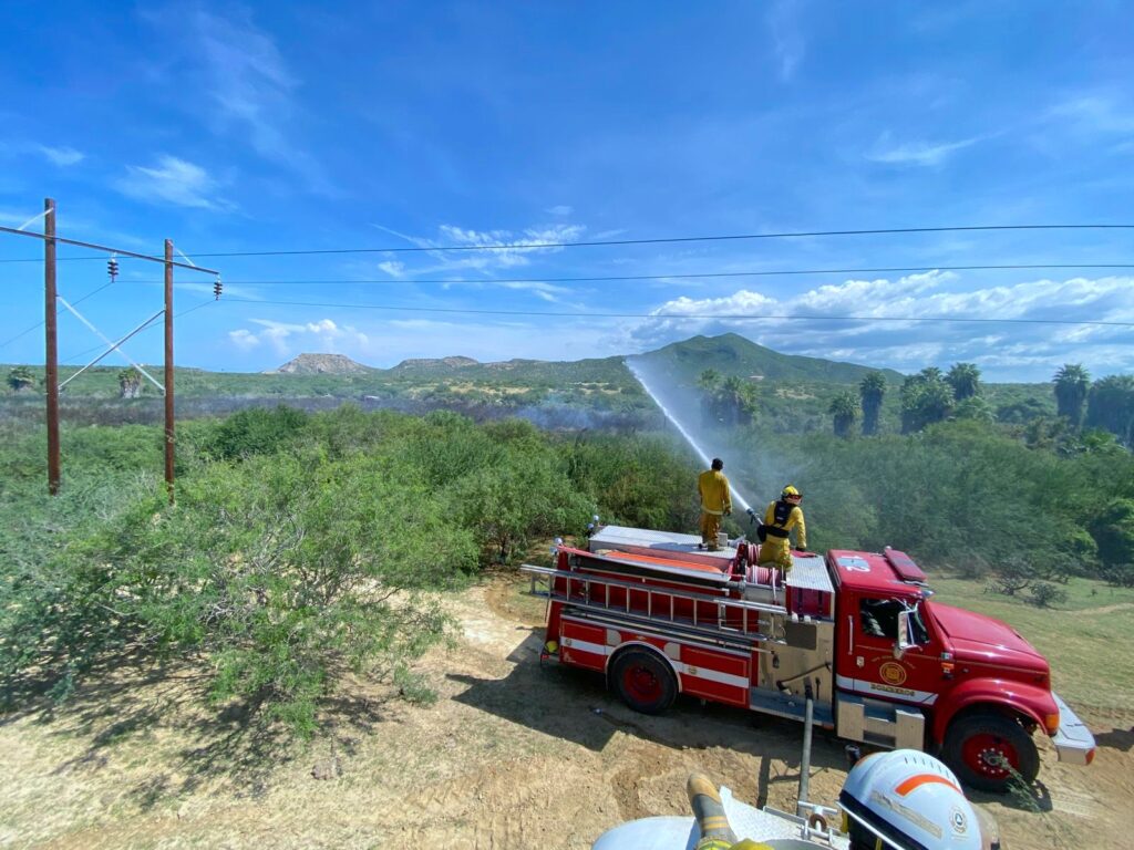 Los Cabos, Baja California Sur.- Luego de cinco horas de intensas maniobras, 15 elementos del Departamento de Bomberos de San José del Cabo lograron sofocar en su totalidad un incendio forestal registrado la mañana de este miércoles 24 de septiembre en la comunidad de Buenavista. El siniestro fue provocado por un corto circuito originado tras la caída accidental de un poste de electricidad.