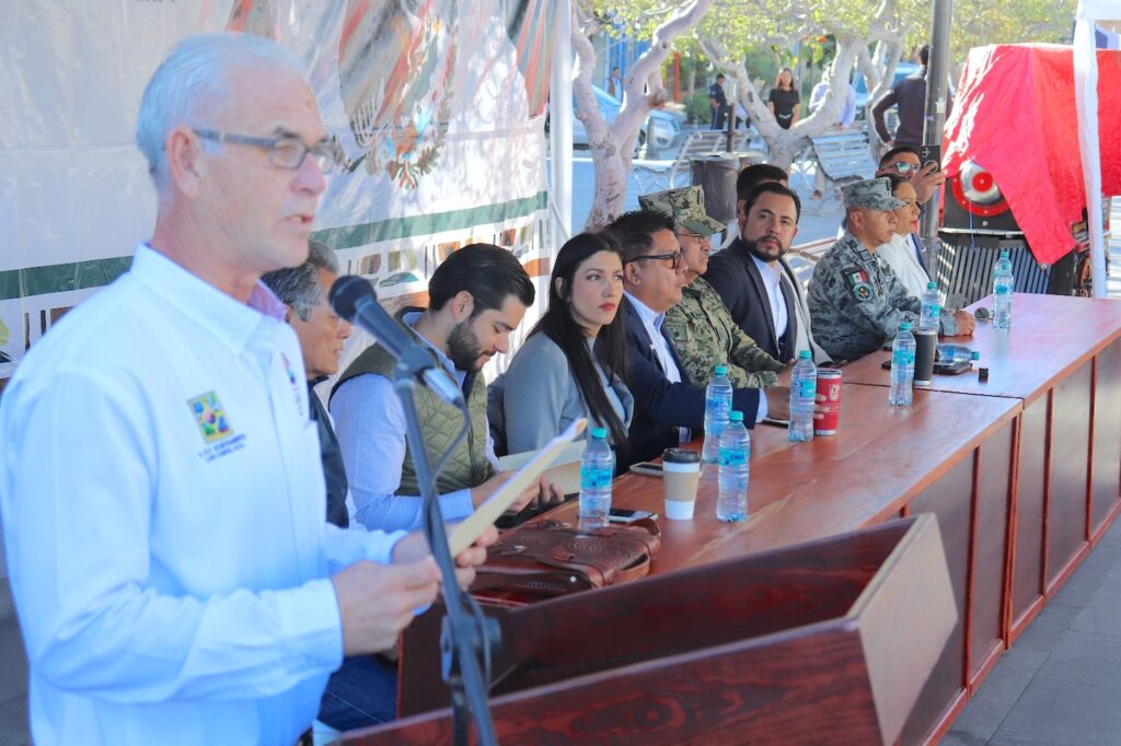 Durante el acto cívico, se contó con la presencia en el presídium el secretario general Alberto Rentería Santana; el V regidor Jesús Alberto Alvarado Aragón; el VIII regidor Celestino Atienzo Beltrán; la directora general del Instituto Municipal de Planeación (IMPLAN), Beatriz González Gibert; la directora municipal de Administración, María Verónica Olvera Guevara, así como del diputado local Omar Torres Orozco; el contralmirante de Infantería de Marina y comandante del Sector Naval en Cabo San Lucas, Víctor Manuel Neri Estrada y el capitán de la Guardia Nacional en Los Cabos, Alejandro Romero Morales.